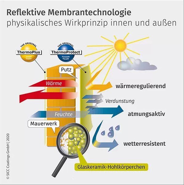 ClimateCoating®-Produkte helfen auf physikalische Weise, Material-, Energie- und Arbeitskraftressourcen einzusparen. Durch die einzigartige reflektive Membrantechnologie werden Baumaterialien nachhaltig geschützt, Werte für kommende Generationen erhalten und die Umwelt geschont.